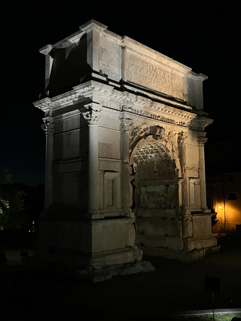 Byron, Goethe, and many others lived in a time when one could walk unhindered inside the Colosseum, among the ruins, along the Via Sacra. How long that has not been possible I do not know. But now in the evening, with few other tourists passing by, I, pretty much alone with the arch of Titus can also my self reflect on the quote passing of time”