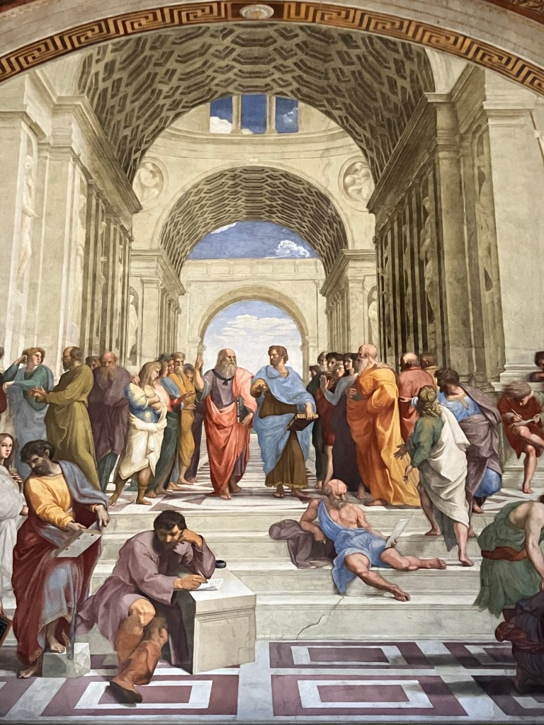 School of Athens is more important as a work of art then a painting a Philosophy. One might ask what degree it was intended for the future to see. like me and the other people in this less-crowded evening Room of the Segnatura.