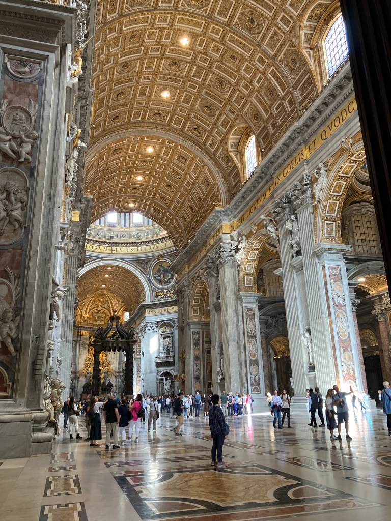 Does not my decades-long Bildungsreise in the “Old World” end here? In St. Peter’s. The final necessary place to experience and consider “History” in situ? From Mobile, Tuscaloosa…. through Jerusalem, Athens, Rome, et al.