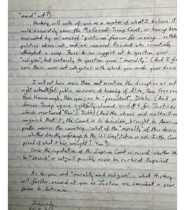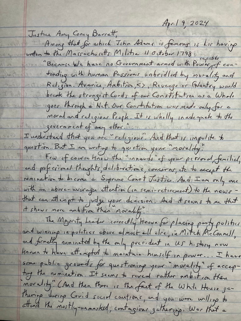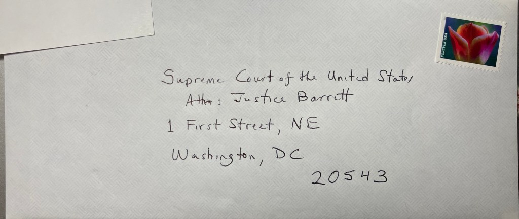 Letter to US Supreme Court Justice Amy Coney Barrett