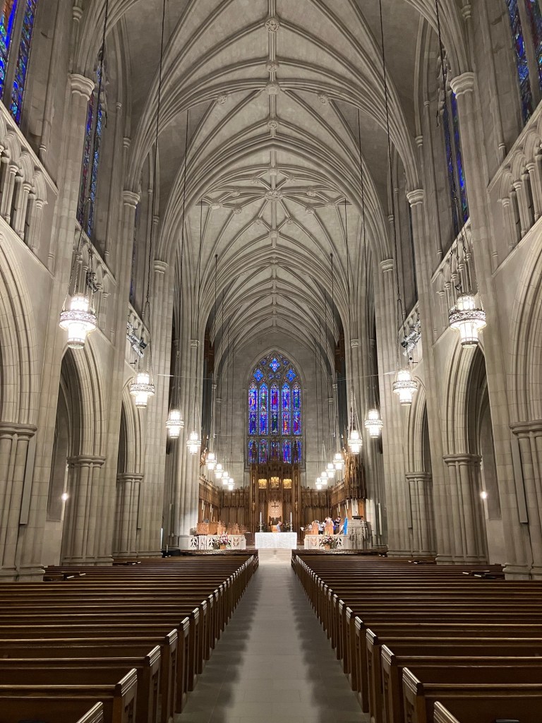 In 1972–73 I certainly did not have mental, nor even emotional, preparation to appreciate the interior of Duke Chapel. I do recall sometime that winter walking out of here, stunned, after a lectured by Dick Gregory. Now I can compare it to churches in Paris and Rome.