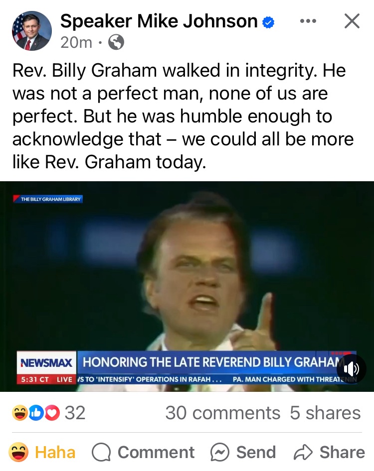 This is what passes for depth of person, meaning, and religion in America. Graham chose passive faith over active spiritual independent knowledge.