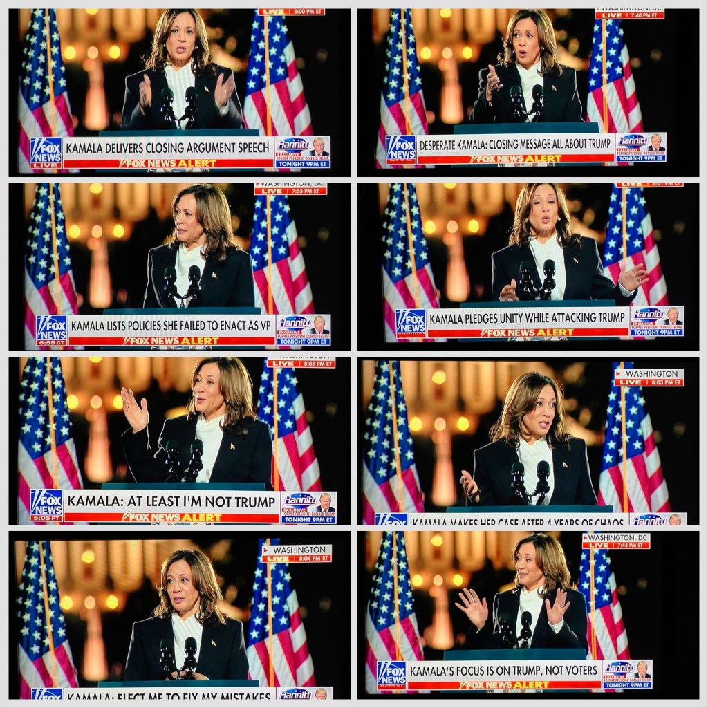 Here is a samplmg of how Fox Cues/Views/Moos reported presidential candidate Kamala Harris’ DC Elipse Address.