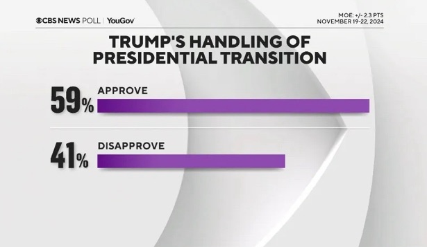 Posted on November 24, 2024November 25, 2024 Rejecting 59% It is reported that 59% of the American people approve of Trump’s transition process. So I reject America. 59%.