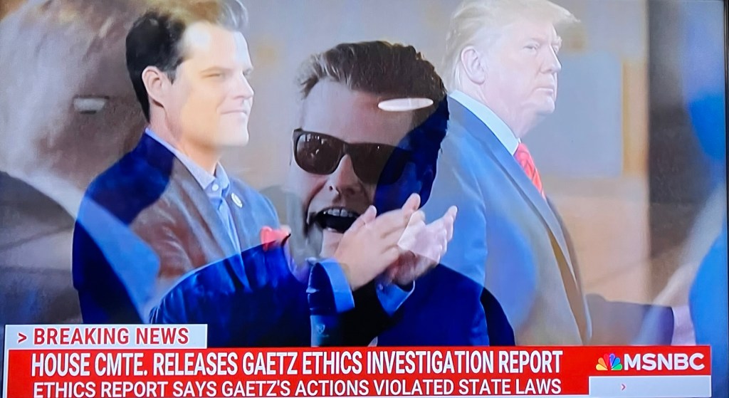 A feloniously convicted former reelected president nominated for US Attorney General, a man (Gaetz) now exposed of the lowest morality, that individual having brought down for the first time in American history a former speaker of the house (McCarthy), who himself had the honesty and political positions of a windvane.